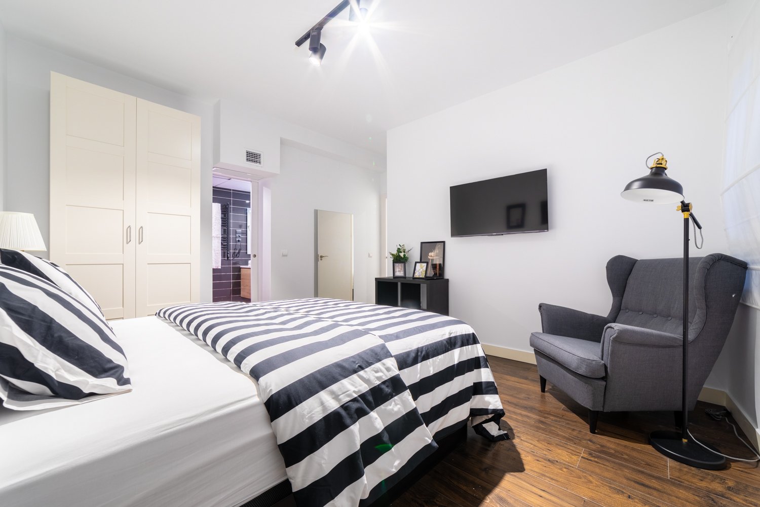 This bright and stylish 2-bedroom apartment offers a cozy and modern living space in the heart of Madrid. Each bedroom comes with a private en-suite bathroom and a comfortable double bed, ensuring privacy and comfort. One of the bedrooms also features a large TV for entertainment. The apartment is designed with great natural light and a fully equipped kitchen, making it perfect for students and professionals looking for a convenient and high-quality stay. Located on the 2nd floor of a classic Madrid building (no elevator). Just a 1-minute walk to Anton Martin metro station (Line 1) and 5 minutes to Sol metro station (Lines 1, 2, and 3), this apartment offers excellent access to Madrid’s top attractions, universities, and business hubs. The neighborhood is lively yet safe, surrounded by cafés, restaurants, and cultural hotspots, including Madrid’s famous Golden Triangle of Art.